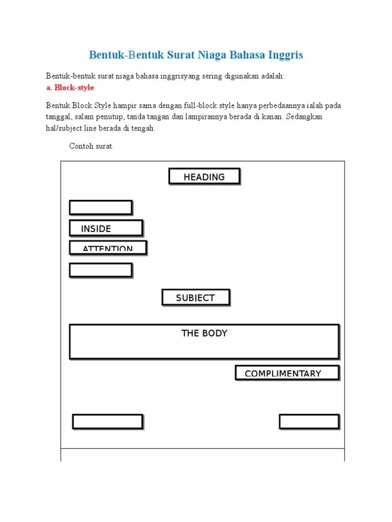 Gaya bahasa surat (dalam konteks inggris dan amerika). The date line = tanggal. Bagian bagian dalam surat bahasa inggris (pengertian beserta contoh ) · 1) heading / letterhand (kepala surat) · 2) reference line (inisial ) · 3) . Baris kiri di bawah heading surat). Demikian penjelasan mengenai pegertian, jenis, begian dan contoh surat (letter) dalam bahasa inggris, semoga dapat .